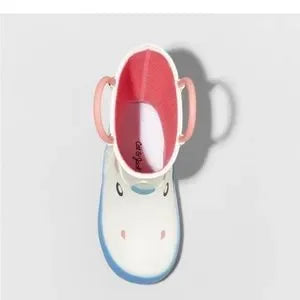 Description: Get your little one ready for rainy day adventures in these Selene Unicorn-Print Rain Boots from Cat and Jack. Made from waterproof materials with a 100percent rubber upper and featuring a closed-toe design, these rain boots prevent moisture from.