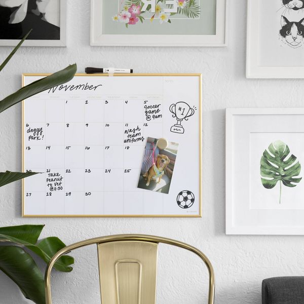 U Brands 16"x20" Dry Erase Calendar Board Gold