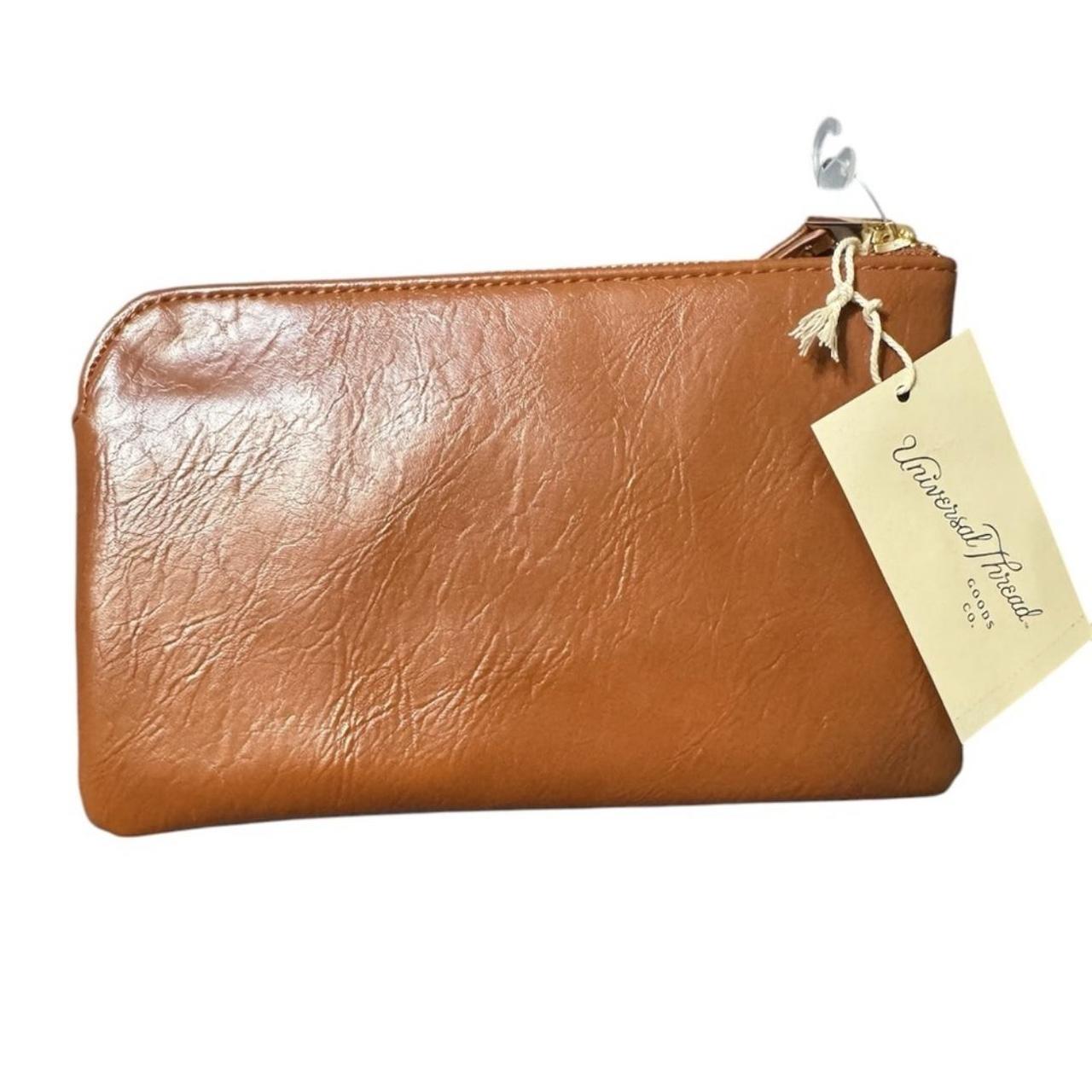 Universal Thread women's zippered pouch clutch in a rich brown faux leather finish