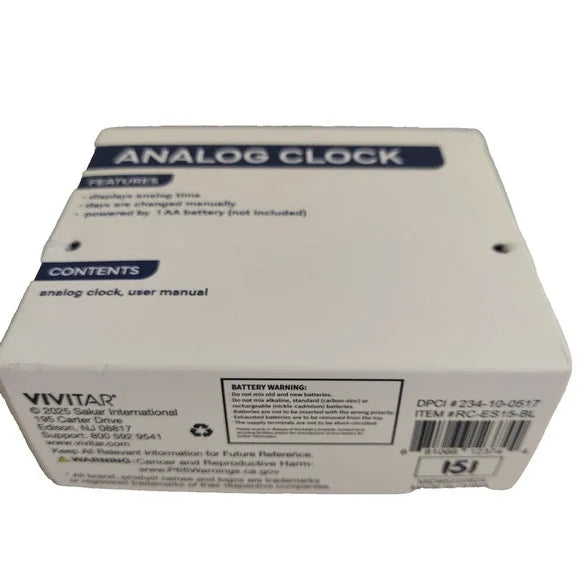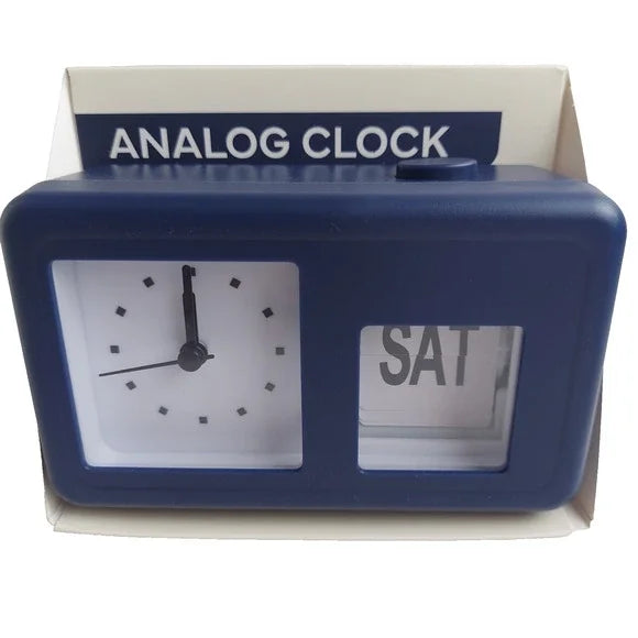 Vivitar Analog Clock Blue Retro Look Flip Date Desk Office Shelf Battery Power
