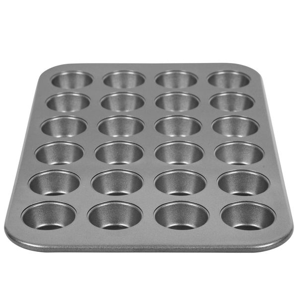 Mini muffin pan measures: 16.1 x 10.32 x 2.1 inches (26.21 x 40.89 x 5.33 cm); includes 24 cavities