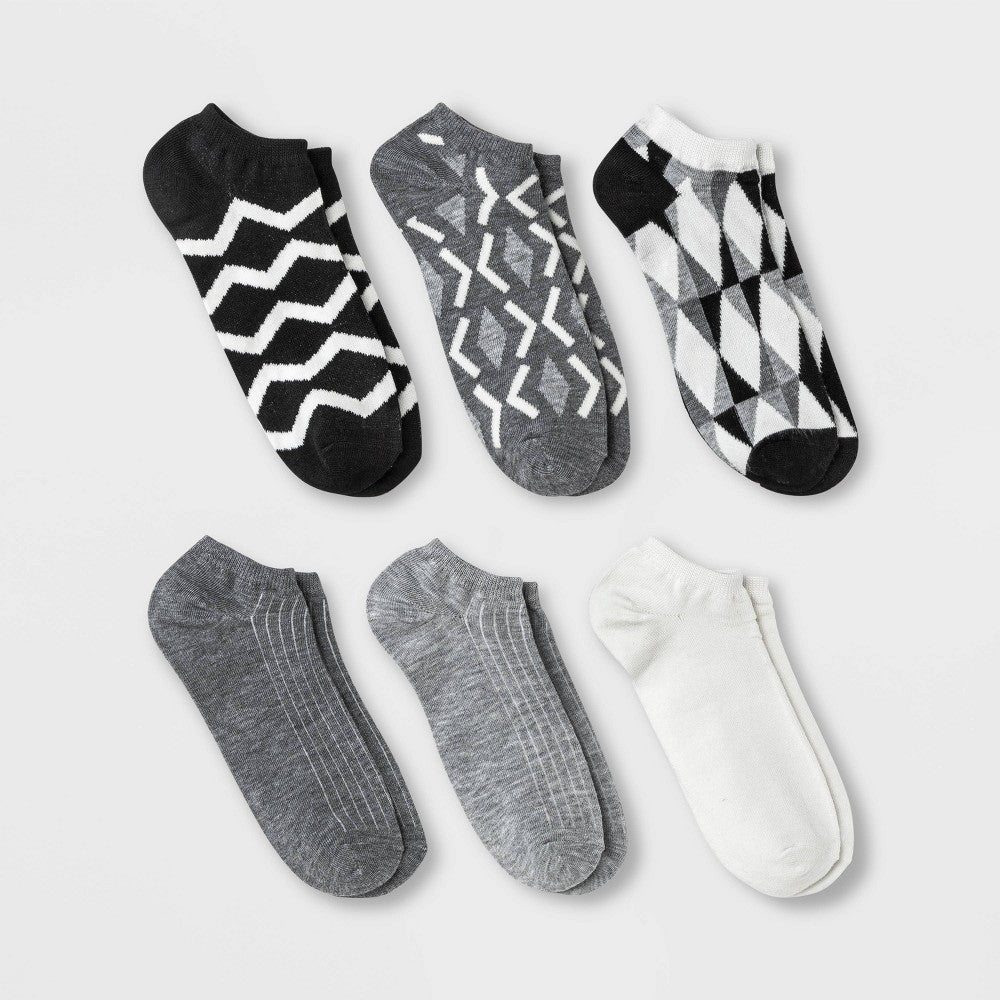 Description: Women s Geometric 6pk Low Cut Socks - Xhilaration Black/White/Gray 4-10. Feel super cute while keeping your feet fresh with these Women s 6pk Low Cut Socks from Xhilaration. Crafted from recycled polyester with a hint of spandex these socks keep you comfortable for hours.….