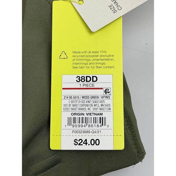Why we're ALL IN: Whether you're hitting the weights, running your favorite trail or running errands, this high-support convertible strap bra will help you stay comfortable all day long. It's designed with moisture-wicking material to keep you fresh during your workouts while the stretchy fabric offers easy movement. A wireless design with padded cups adds more comfort and provides high support. The adjustable back closure allows for customizable fit, so you can stay comfy all day long. All in Motion: Made for every move, priced for every day. Size: 38DD. Color: Moss Green. Gender: female. Age Group: adult. Pattern: Solid. Material: Recycled Polyester.