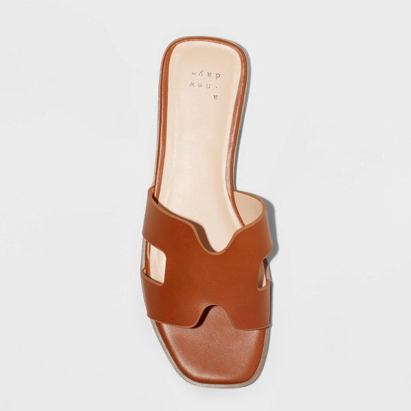 Women's Nina Slide Sandals - Color Cognac - Size 6 - A New Day™