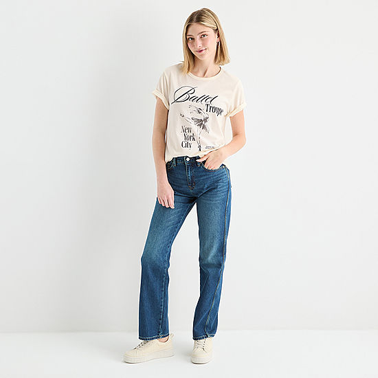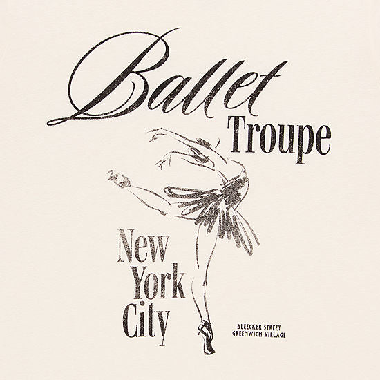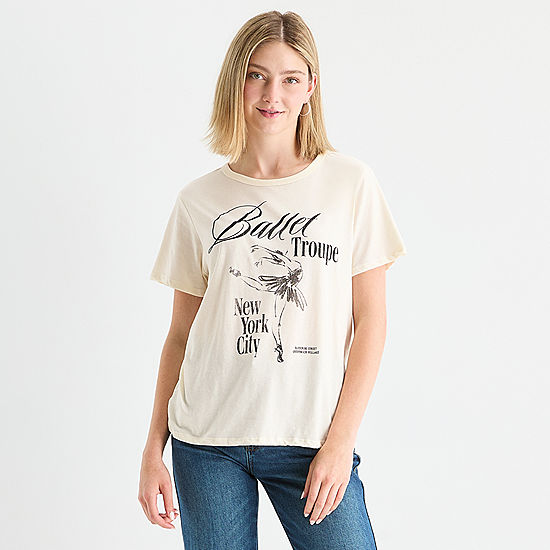 Description: Show off your love for New York City with the Women's NYC Ballet Short Sleeve Graphic T-Shirt in ivory. This t-shirt features a ballet-inspired graphic print and is made from lightweight jersey fabric for breathability and softness against your skin. With its convenient pullover design, the women's NYC ballet short sleeve graphic t-shirt in ivory is a go-to option for busy days or quick outfit changes.