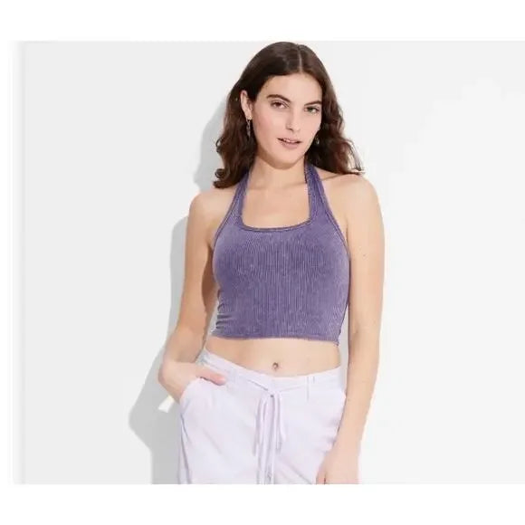 Description: Ribbed halter top from Wild Fable™ in a solid hue. Designed with a slim-fit silhouette and a cropped length. Made from midweight fabric with stretch for comfortable all-day wear. Pullover style completes the look with easy on and off. If you're not satisfied with any Target Owned Brand item, return it within one year with a receipt for an exchange or a refund. Wild Fable™: A look for every story.