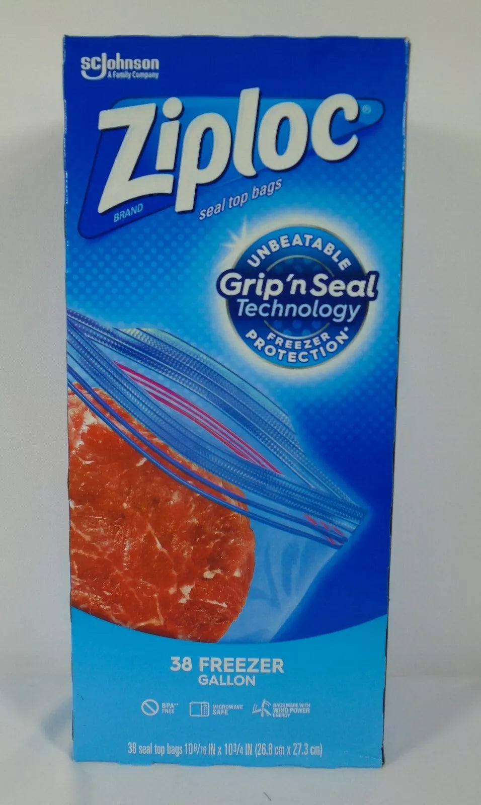 Ziploc Freezer Gallon Bag, Stay Open Design, Grip 'n Seal Technology, Reusable, 38 Count