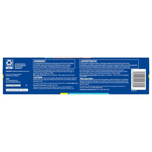 • Also try Ziploc® Brand Freezer Bags in half gallon and quart sizes